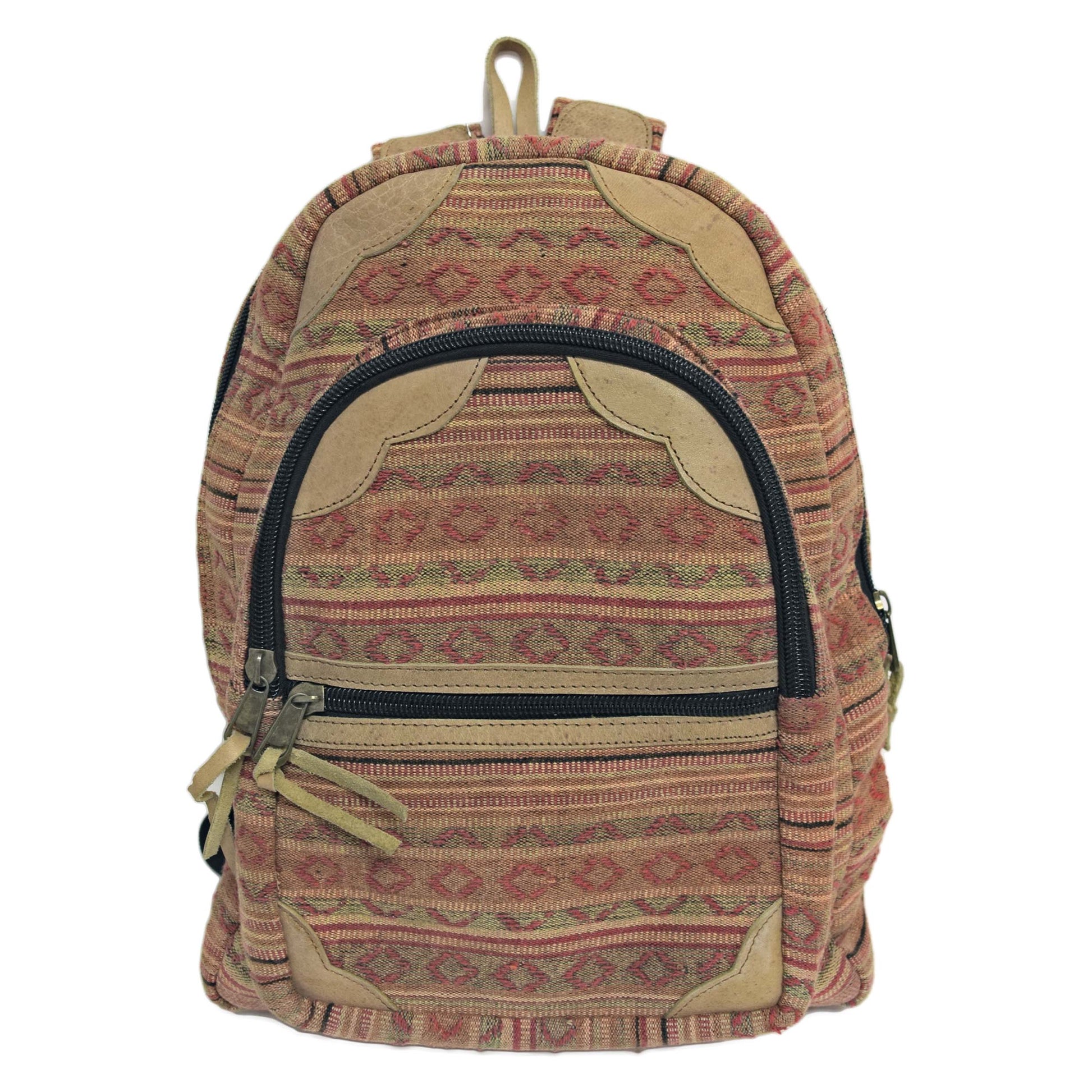 Made from Nepalese Gheri Cotton and Buffalo Leather. Bags are each slightly unique in colors in the fabric and the leather.